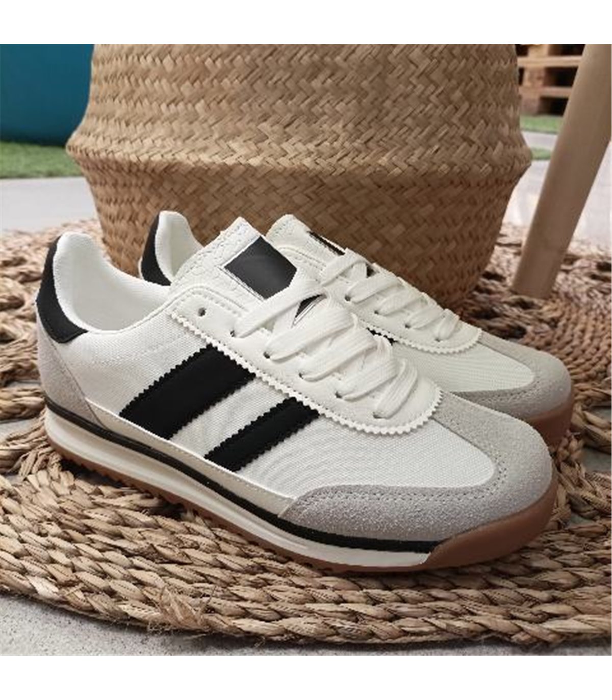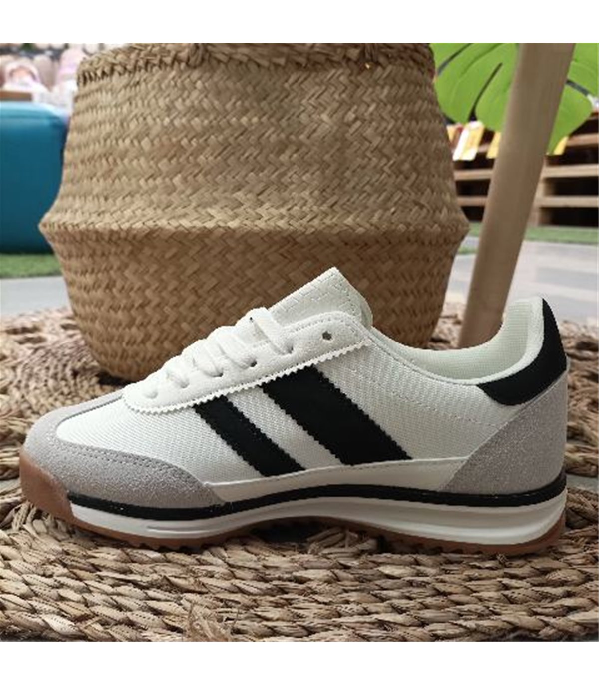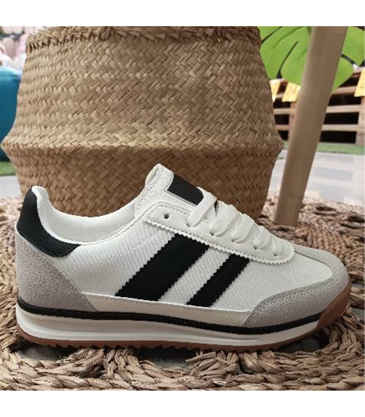 Zapatilla Dos Rallas Laterales Negras Blanco Suela Ancha 36-41