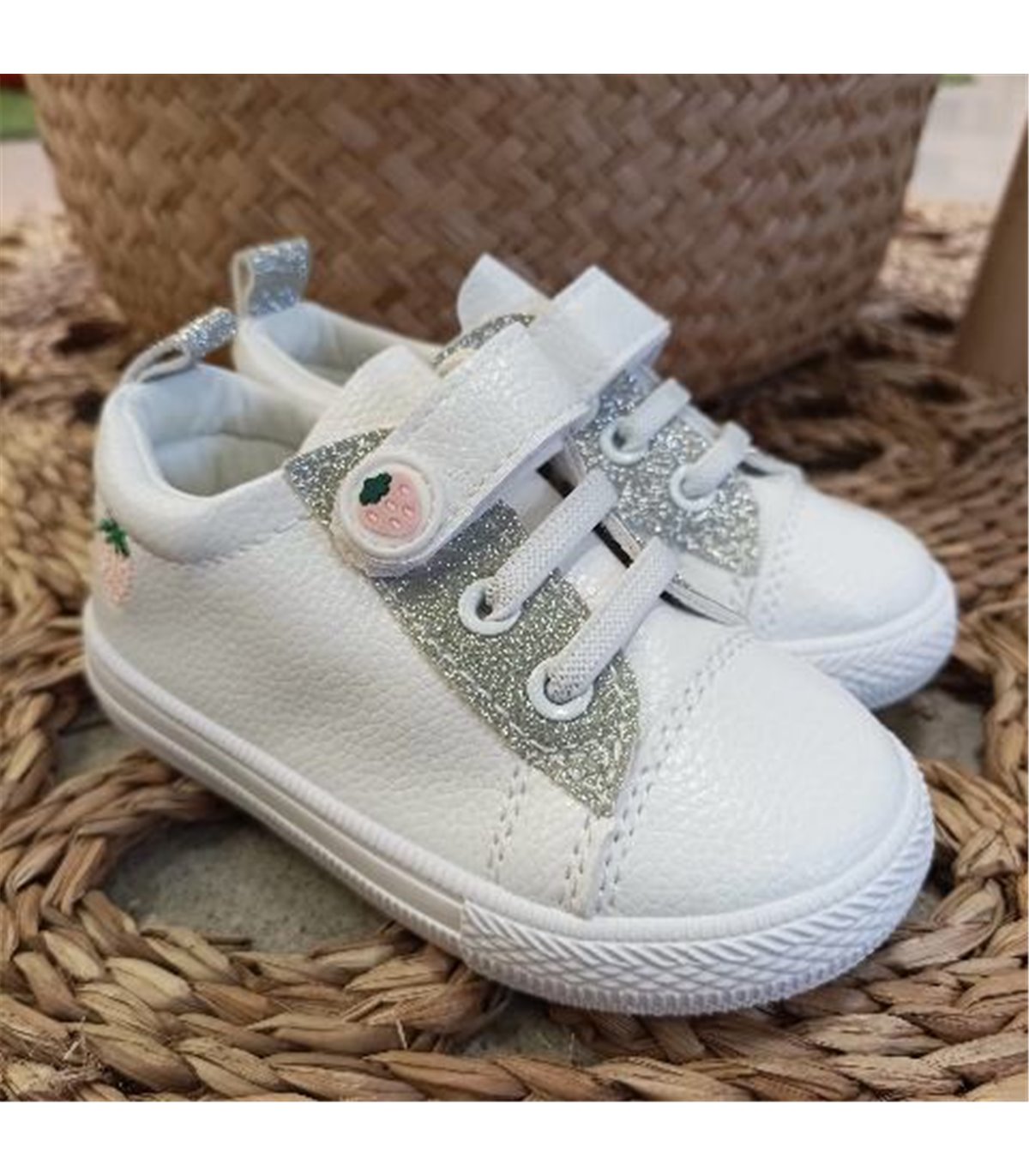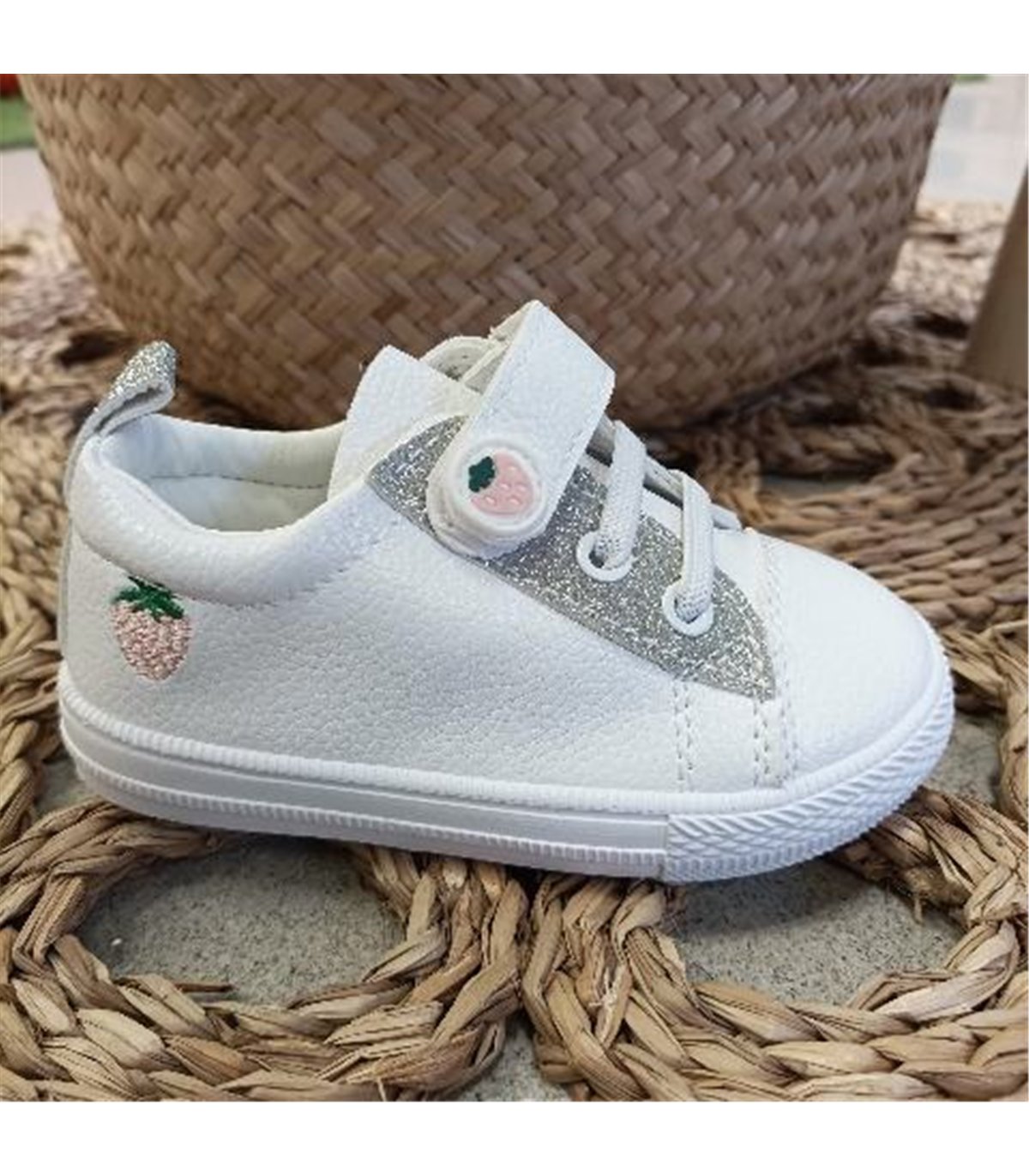 Zapatilla Niña Elasticos Y Velcro Fresita Blanco 19-25
