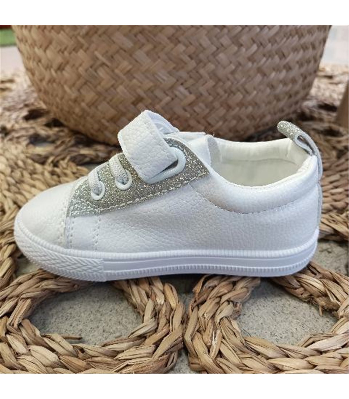 Zapatilla niña elasticos y velcro de la colección verano 2025 disponible por 22,95 en color BLANCO en la numeración del 19-25.