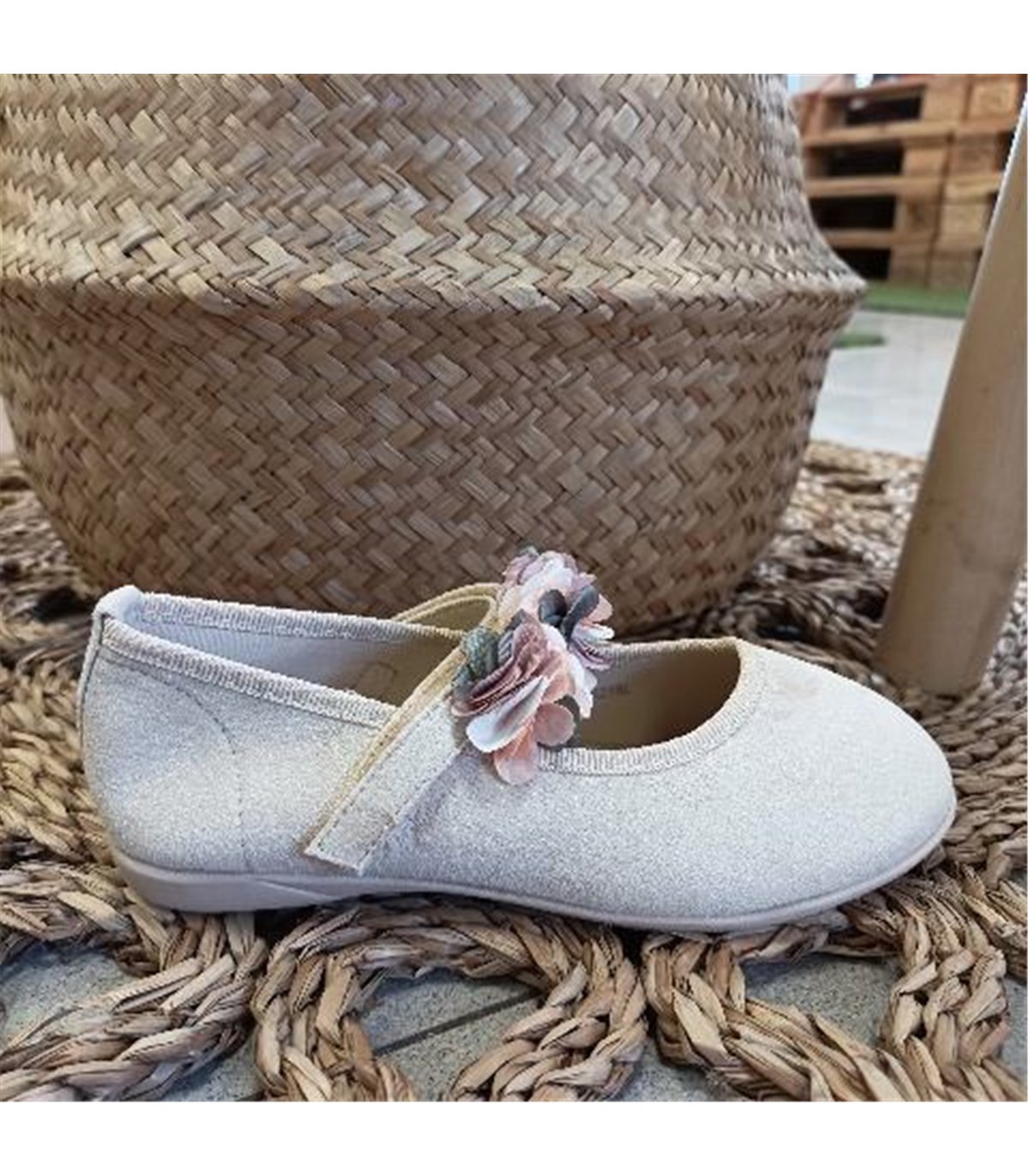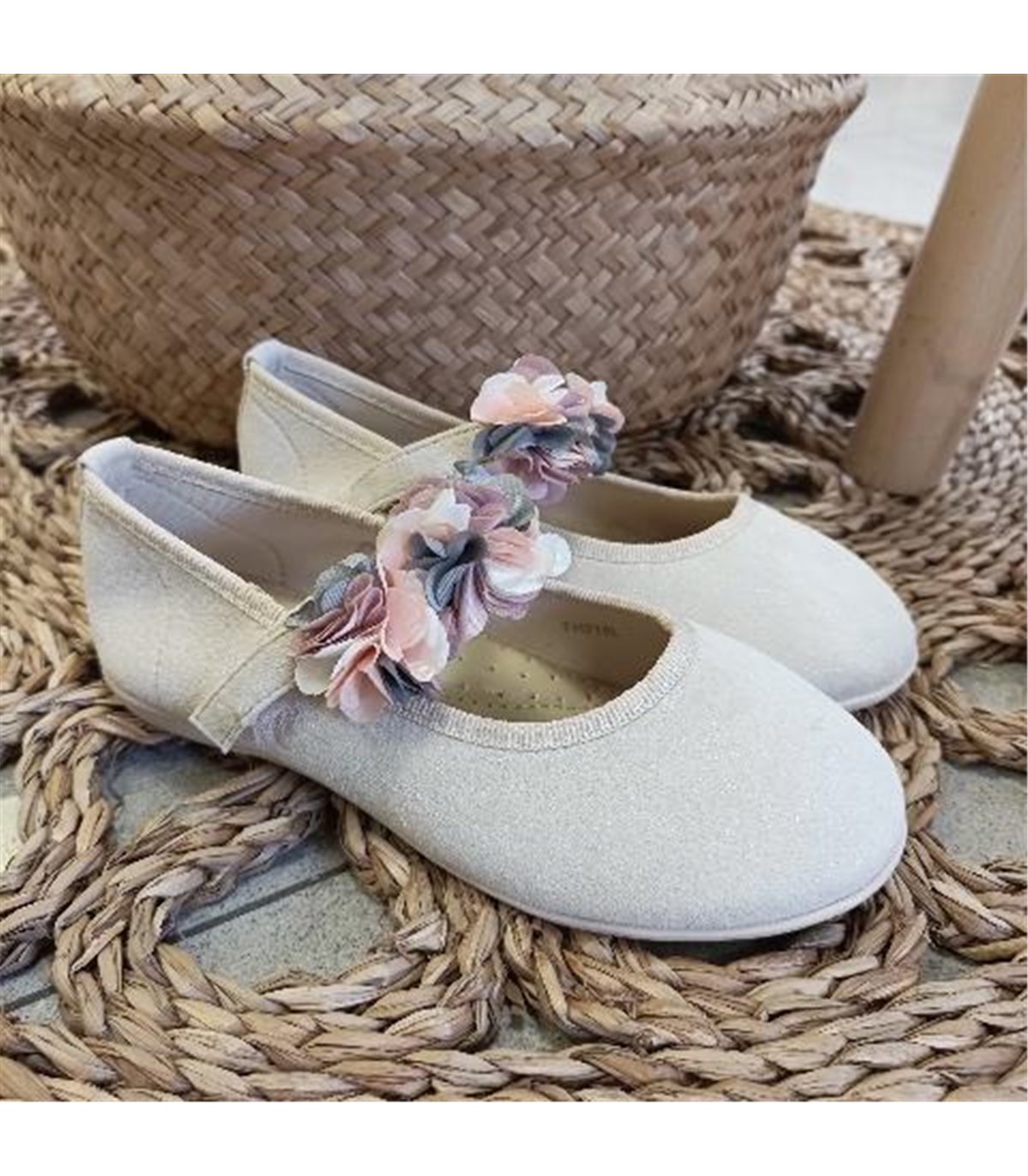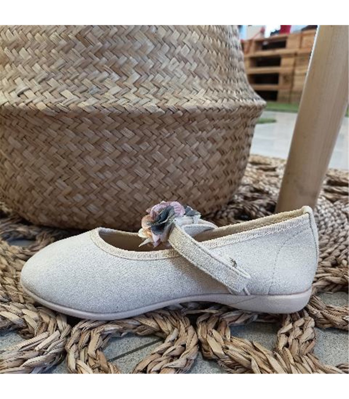 Mercedita de lona con cierre de flores de la colección verano 2024 disponible por 19,95 en color BEIGE en la numeración del 24-35.